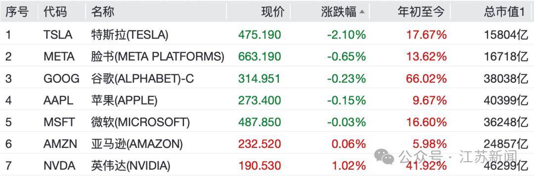 板块方面,昨夜今晨美股大型科技股多数下跌,万得美国科技七巨头指数跌0.06%。个股方面,特斯拉跌超2%,脸书跌0.65%,谷歌跌0.23%,苹果跌0.15%,微软跌0.03%,亚马逊涨0.06%,英伟达涨逾1%。