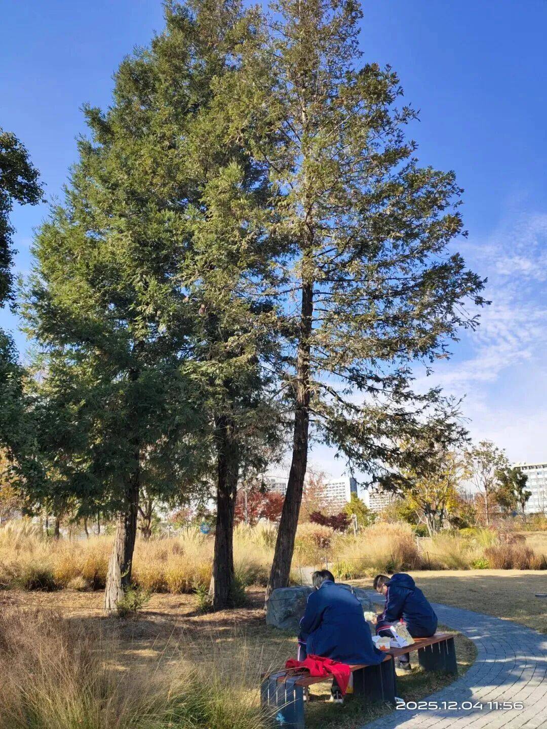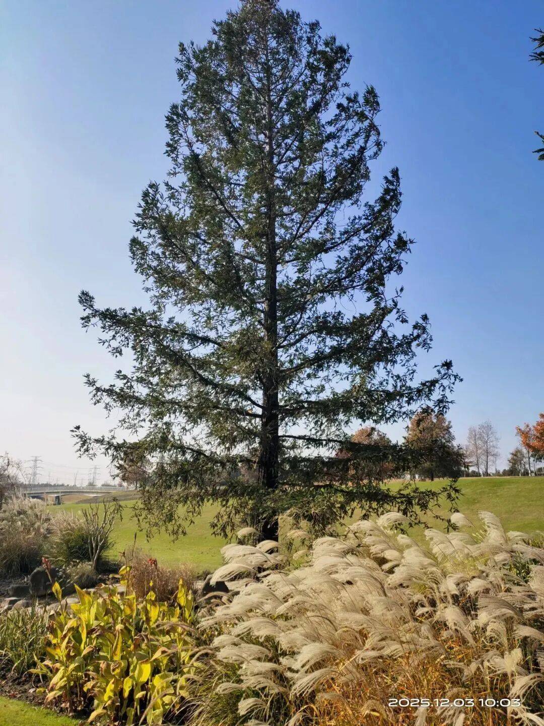 眼下,随着气温持续降低,红杉也迎来观赏黄金期。与周围落叶乔灌木及枯黄草本植物形成鲜明对比,观赏效果更加突出。漫步林间,阳光穿透红杉层层枝叶洒下斑驳光影,此刻清新的草木气息萦绕鼻尖,既能感受“天然氧吧”的治愈,又能定格秋末里难得的绿意盛景。