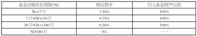 1)本基金A类基金份额赎回费率及归入基金财产的比例如下表所示: