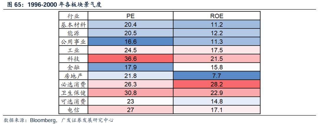 与其担心AI泡沫问题,不如关注除了科技以外,是否有行业能为市场整体托底。1996-2000年期间,由于资金流向科技板块,有许多优质板块出现ROE与PE错配的现象,如工业、必选消费、卫生保健。这些板块在泡沫破灭后展现了较强的韧性,受影响较小,能够为市场托底。