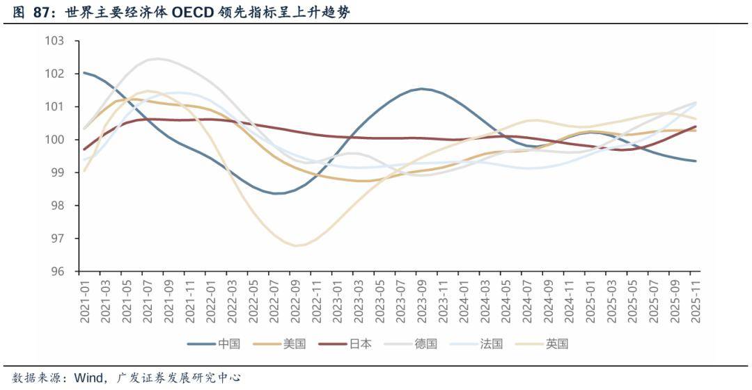 主动财政紧缩路径在短期较难实现:(1)全球经济仍在回暖的趋势中,短期快速收紧财政政策将会使得经济再度走弱;(2)目前2026年全球主要经济体基本宣布以宽财政政策基调为主;(3)全球流动性预计维持合理充裕,宽货币基调延续以配合赤字扩张。中、美、欧等经济体仍处于降息周期中,日本货币政策边际收紧,但利率仍然极低。