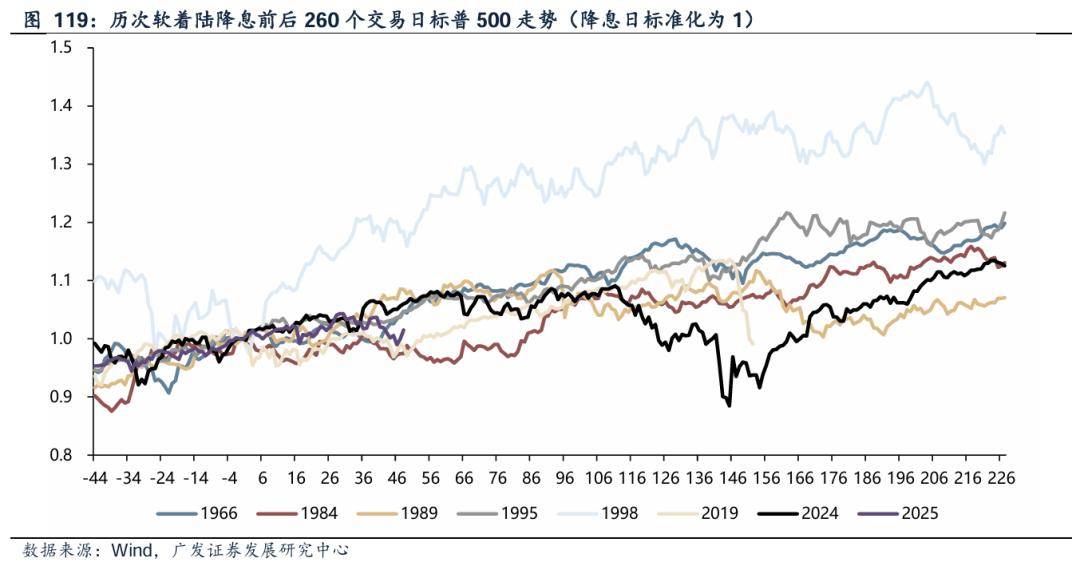 参考历史情形,“预防式”降息几乎不存在中间形态。目前来看,美国经济整体维持韧性,增长适度、通胀温和、就业稳健,偏向“软着陆”的路径。参考历史,距离当前最近的四次软着陆(1995.1998、2019、2024)降息幅度均只有 75-100bps。因此若基于“软着陆”的情形,假设本轮降息幅度区间为75-100bp,而目前已经降息75bp,因此在就业并未出现明显衰退的背景下,美联储可能短期将暂停降息,并为明年降息留足空间。