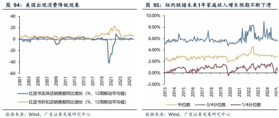 贫富差距的扩大最终会影响消费需求。2025年边际消费倾向更高的中低收入家庭的收入增长预期下滑更为明显,从长期来看会导致美国消费需求受损, 2025 年下半年以来,传统实体零售增速已滑入负区间,而主打性价比的折扣店增速仍维持在6%以上的稳健水平,显示出明显的消费降级与替代效应。在人工智能产业尚未实现大规模回报的背景下,美国经济仍然需要依靠消费需求来支撑,并依此消化美股的估值,因此美国宽货币、宽财政的组合或将延续。