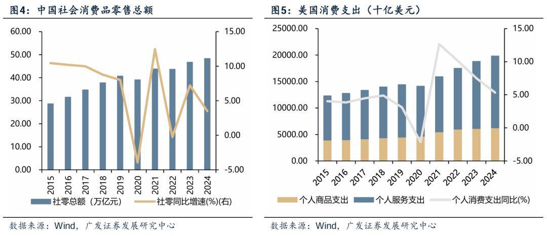 近年来中国经济结构转型,主要依靠科技创新和海外渗透率提升。从GDP贡献度来看,据国家统计局,我国“三新”经济(新产业、新业态、新模式)增加值占GDP比重稳步提高,且“三新”经济增速持续快于GDP整体的增速,显示出其已成为推动经济高质量发展的重要引擎,我国经济结构正在持续优化升级。
