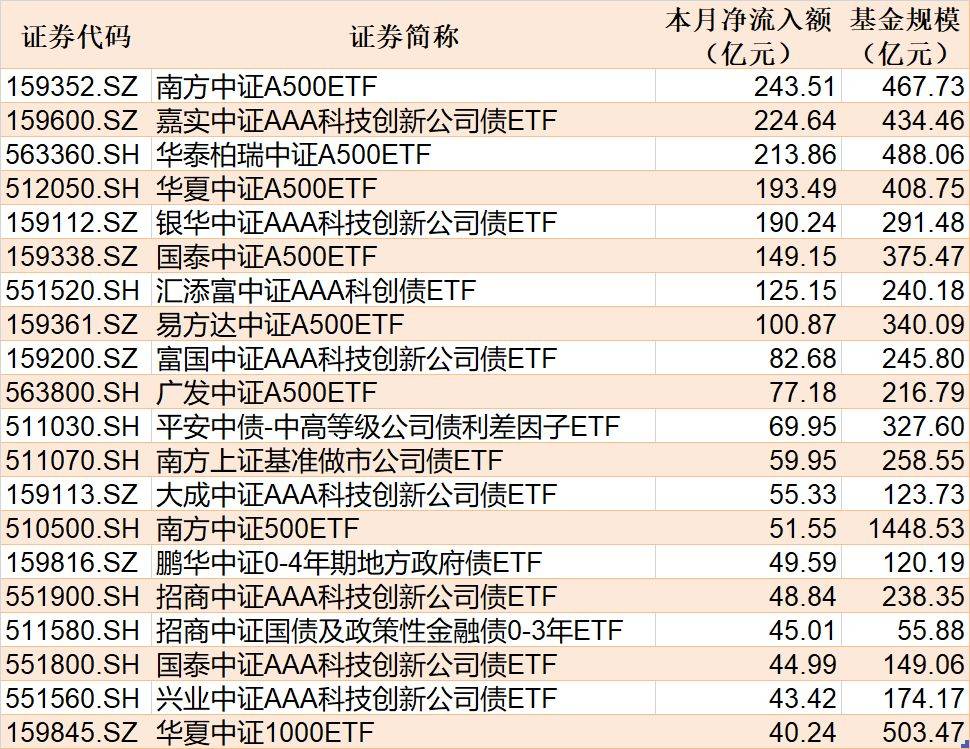 截至12月30日,本月资金净流入额居前20的ETF名单如下: