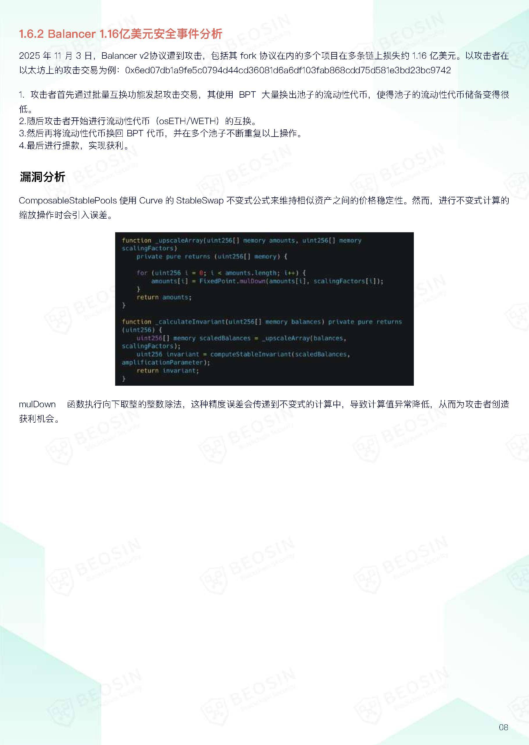 报告还深入剖析了多起典型安全事件,如Cetus Protocol因左移运算溢出漏洞损失2.24亿美元,Balancer因价格计算精度误差遭攻击损失1.16亿美元,以及GMX可重入漏洞导致4200万美元被盗后的跨链洗钱路径。同时,反洗钱章节揭示了加密货币被用于跨国毒品洗钱的复杂网络,展示了Beosin Trace等工具在追踪、冻结非法资金中的关键作用。研究指出,未来AI驱动的钓鱼攻击、供应链风险及物理胁迫将成为新威胁焦点,呼吁构建涵盖技术、意识与协作的多层次防御体系。