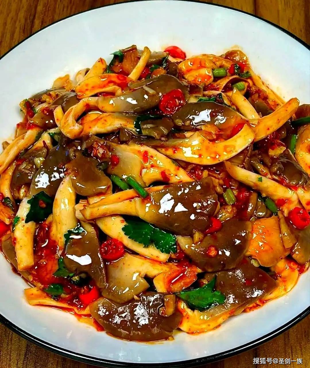 4. 翻炒裹料:香气出来后,倒入复炸好的平菇,快速翻炒均匀。关火,趁热撒入辣椒粉、孜然粉、熟白芝麻和葱花,用锅的余温翻拌均匀,让每一根平菇都沾满香料即可。