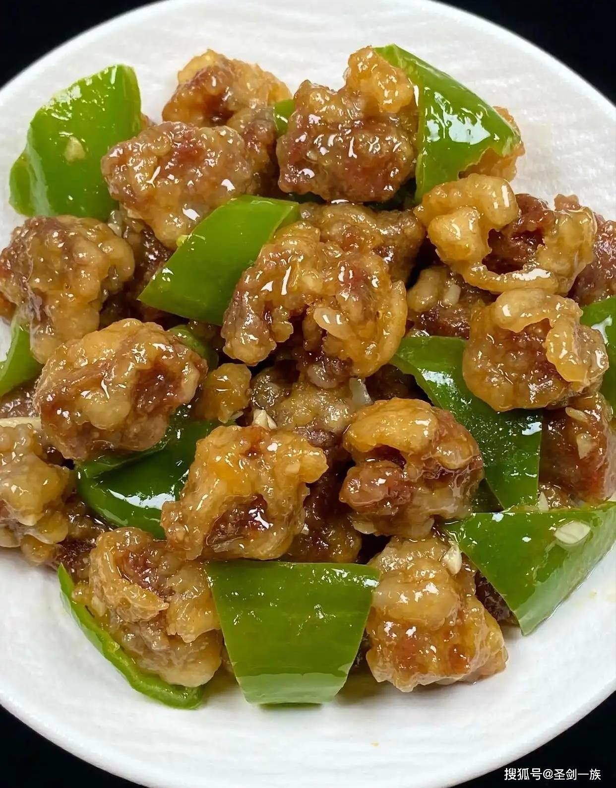 1. 里脊肉切2厘米见方块,加半勺盐、1勺料酒腌制30分钟;淀粉沉淀后倒掉表层清水,加1小勺生豆油调成浓稠淀粉糊,与肉块抓匀。