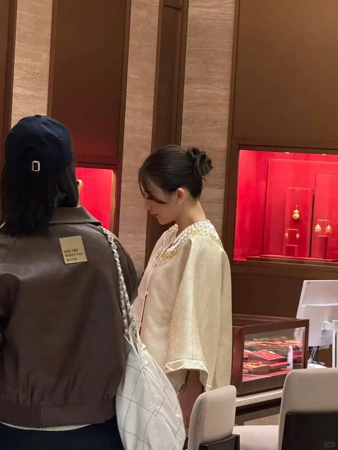方媛逛金店的时候,一点都没架子。哪怕身边还有其他顾客围观,都保持镇定自若、并没有清场子。