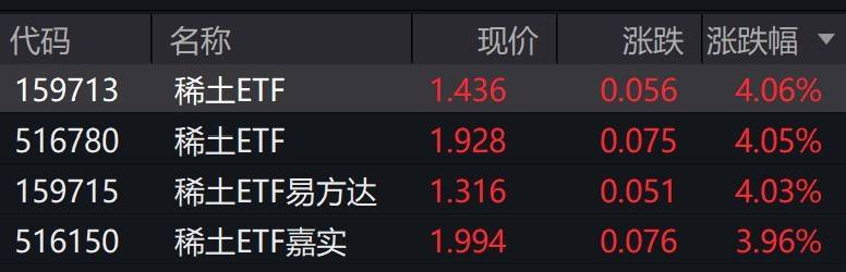 受盘面影响,稀土ETF早盘涨约4%。