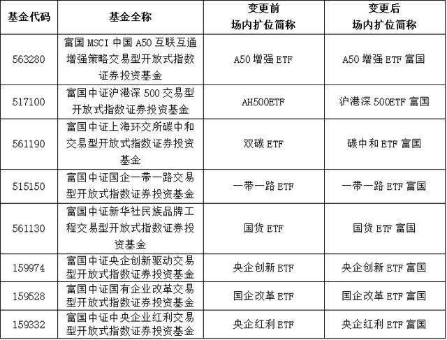 富国基金首批8只ETF简称调整完成,要素清晰易识别