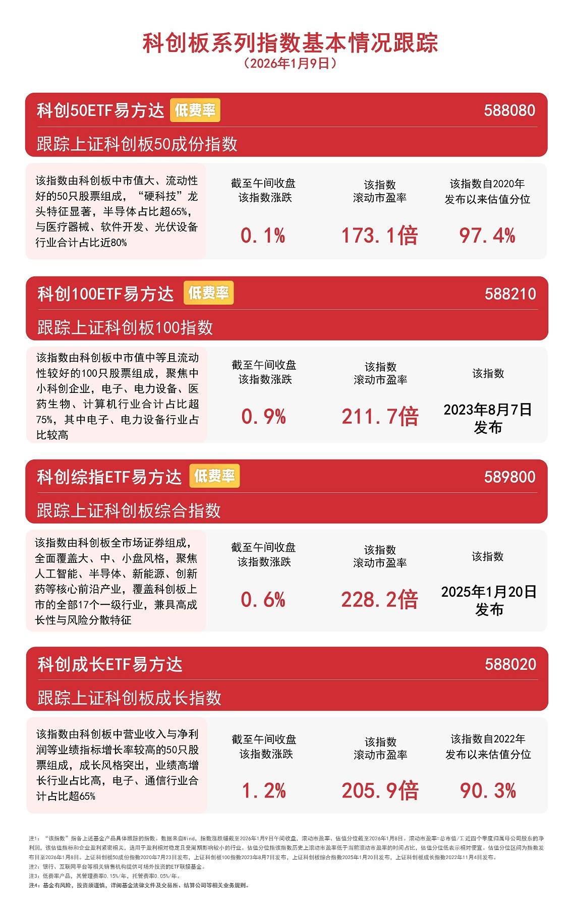 截至午间收盘,科创成长指数上涨1.2%,科创100指数上涨0.9%,科创综指上涨0.6%,科创50指数上涨0.1%。