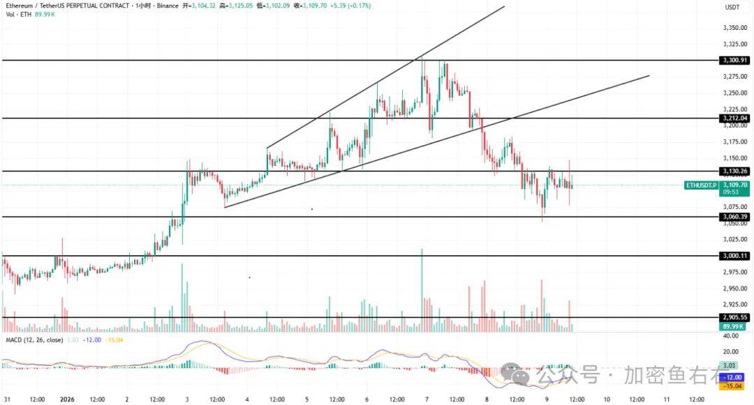 (1)ETH3130是这波震荡行情分水岭,右侧突破企稳追多,看3212减仓,因为这里是这波行情的618位置,突破3130再跌破顺势做空,3060和3000均是有效支撑。