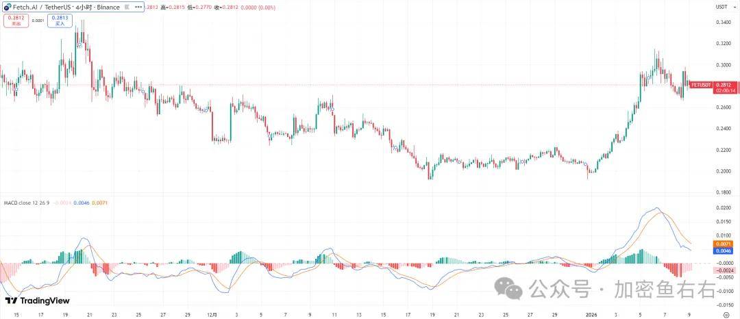 FET在高位小级别的反弹里,没有实际资金流入,整体大级别也是保持空单主导,是比较明显的走弱信号了,强劲阻力位在 0.2980 附近,若在 24 小时高点被拒,可在 0.2950–0.2980 区间考虑做空。