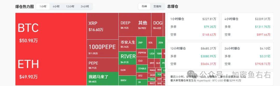 最近24小时,全球共有 119,543 人被爆仓 ,爆仓总金额为 $4.10 亿!比特币、以太坊昨日晚间回踩底部支撑趋势线,精准回踩后立即不带任何犹豫的反弹。