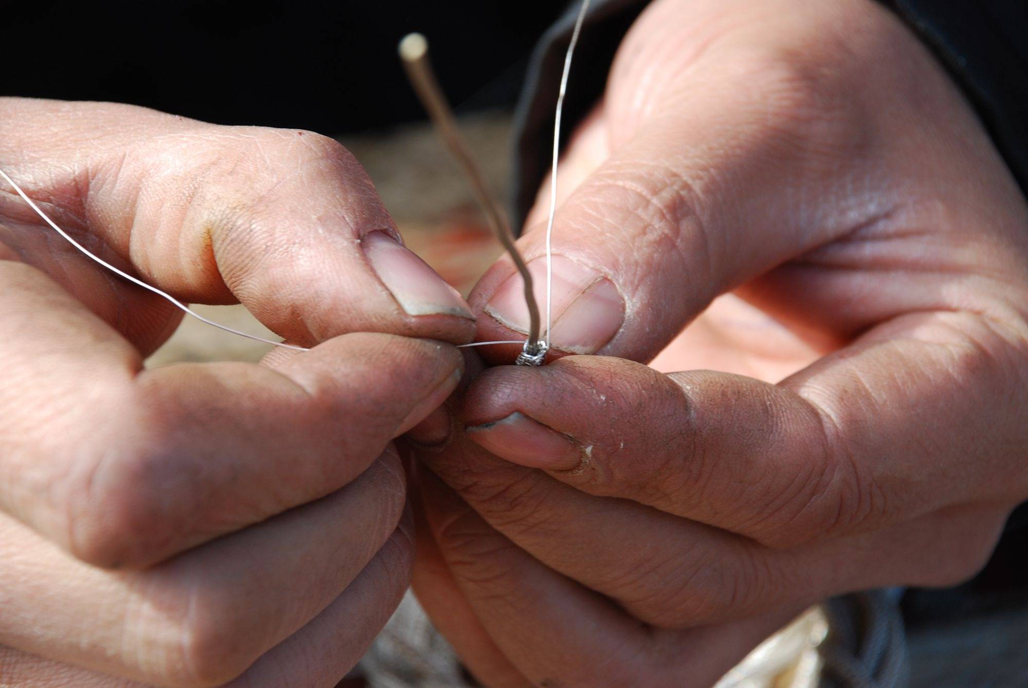 编丝是苗族银饰锻制技艺最重要的一个步骤,细如发丝的银丝随着工匠手指的翻动编织出繁复花纹,一根根银丝在生了老茧的手中变出千种模样,让人叹为观止。