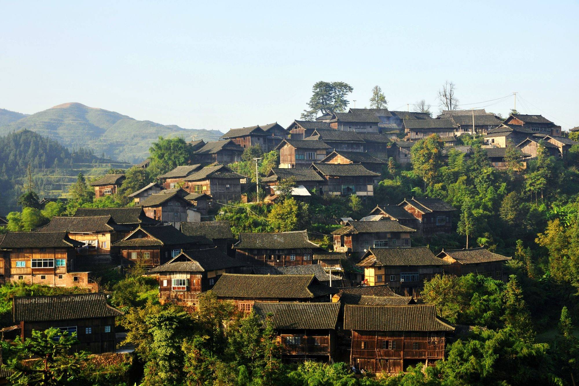 从高处俯瞰村庄,青翠山色中生出一片片褐瓦,现出一个个人家,上千年来,勤劳的苗家人在这里繁衍生息,将苗家银饰锻制技艺传承了六百多年,银色变成了村子最厚重的底色。