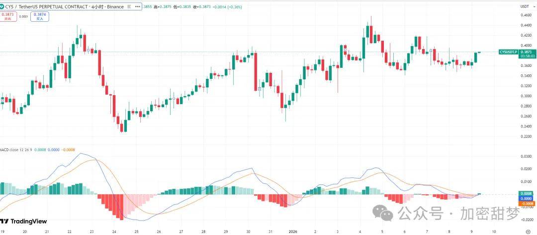 CYS上币安合约后没有严重的砸盘,价格在 0.35‑0.40u区间波动,一路慢慢洗上去了。之前也提到过这个项目创始人算是很实诚的,对社区和生态很好,TGE的时候激励给的也不少,估计机构和大户都盯着利好看能否上韩所了。