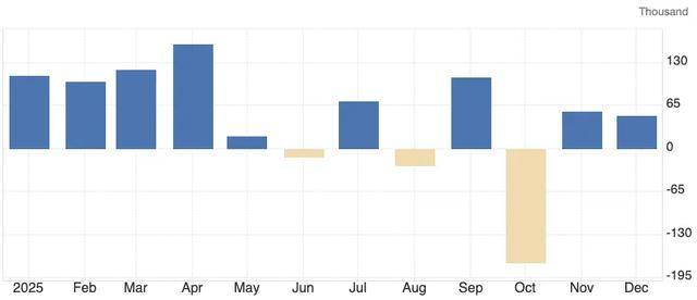 (美国2025年各月份非农就业人数,来源:tradingeconomics)
