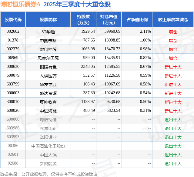 根据2025基金Q3季报公募基金重仓股数据,重仓该股的公募基金共15家,其中持有数量最多的公募基金为博时基金的博时恒乐债券A。博时恒乐债券A目前规模为108.07亿元,最新净值1.2136(1月15日),较上一交易日上涨0.22%,近一年上涨8.19%。该公募基金现任基金经理为张李陵 江海峰。张李陵在任的基金产品包括:博时信用债纯债债券A,管理时间为2020年7月13日至今,期间收益率为21.02%;博时恒泽混合A,管理时间为2021年2月8日至今,期间收益率为18.47%;博时恒泰债券A,管理时间为2021年4月22日至今,期间收益率为18.32%;博时博盈稳健6个月持有期混合A,管理时间为2021年8月10日至今,期间收益率为-3.35%。江海峰在任的基金产品包括:博时恒泽混合A,管理时间为2025年12月31日至今,期间收益率为0.66%;博时稳益9个月持有混合A,管理时间为2025年12月31日至今,期间收益率为0.57%;博时稳健增利债券A,管理时间为2025年12月31日至今,期间收益率为0.57%。