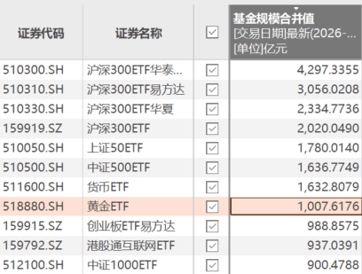 根据Choice数据统计,追踪黄金指数相关的ETF规模从2025年初的712.8亿大幅上涨至1月14日的2697亿元,所有黄金ETF产品的规模都出现数倍增长。