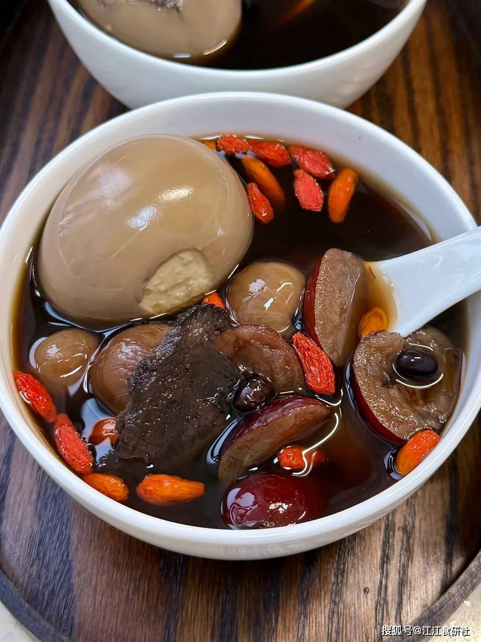 咬一口,鸡蛋的每个缝隙里,都浸满了当归、黑豆、红枣的复合香味。