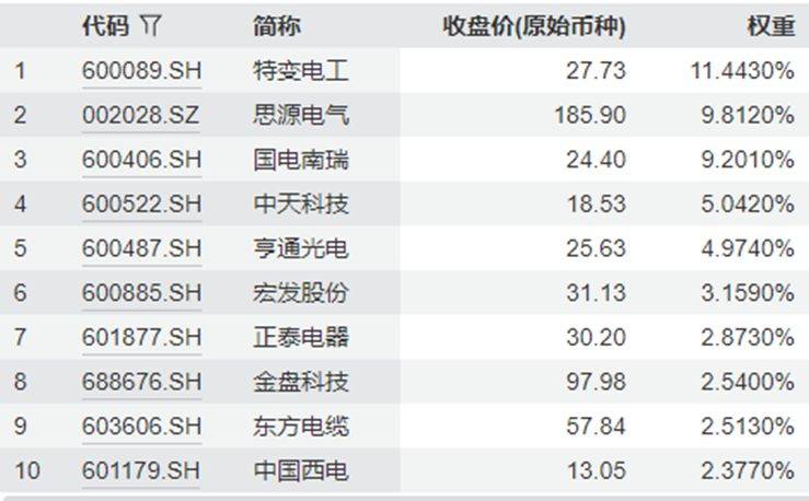中证电网设备主题指数主要权重股
