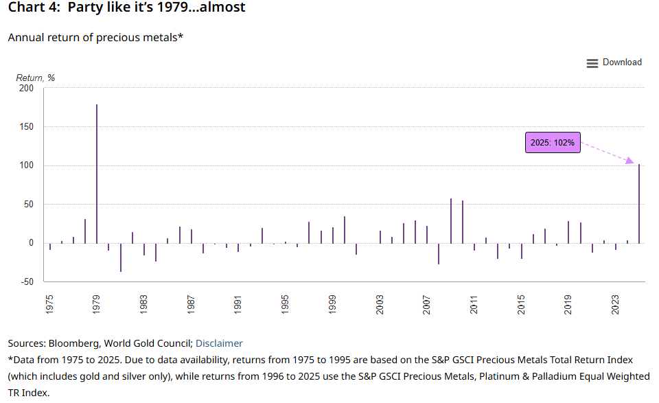 对于整个金属板块,2025年的市场行情并非黄金独舞,而且呈现出贵金属与基本金属整体走强的趋势,特别是贵金属在2025年的表现堪称近50年来最强劲的一年。有技术板块集体表现强劲的背后,是投资者对全球资源供应链安全的持续担忧,而特朗普政府所奉行的“门罗主义“及相关举措则是引发本轮有色行情的重要导火索。