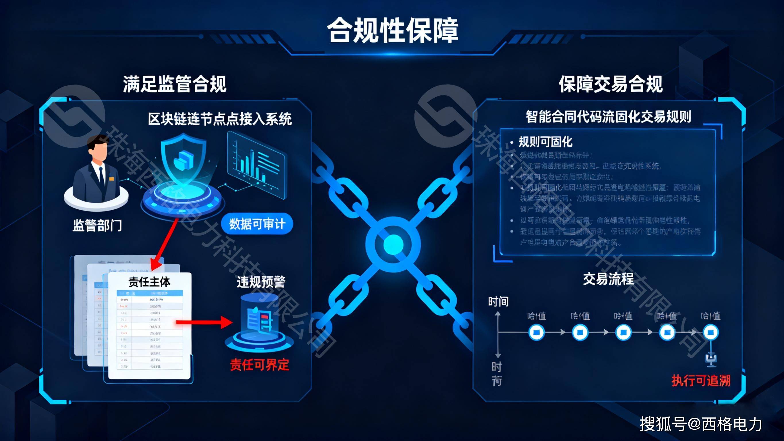 绿电直连交易的合规性核心在于“符合监管要求、满足交易规则”,区块链通过数据透明化、责任明确化,解决了传统模式下监管难、规则执行乱的痛点,为交易双方与监管部门提供双重合规保障。