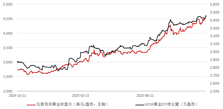 图二:SPDR黄金持仓量与伦敦现货黄金收盘价