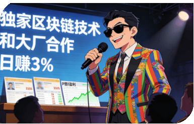 1.画饼吹牛皮,主打一个诱骗:骗子先编一堆高大上的词,比如“独家区块链技术”“和大厂合作”,再放一堆P的盈利截图、转账记录,说什么“日赚3%”“月入翻倍”“零风险”。说白了就是利用年轻人想快速赚钱的心理,把空气包装成“致富密码”。