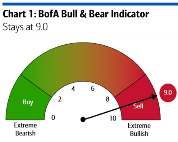 情绪层面,美林的牛熊指标已经进入偏亢奋区域,这个状态让我想起去年年初。