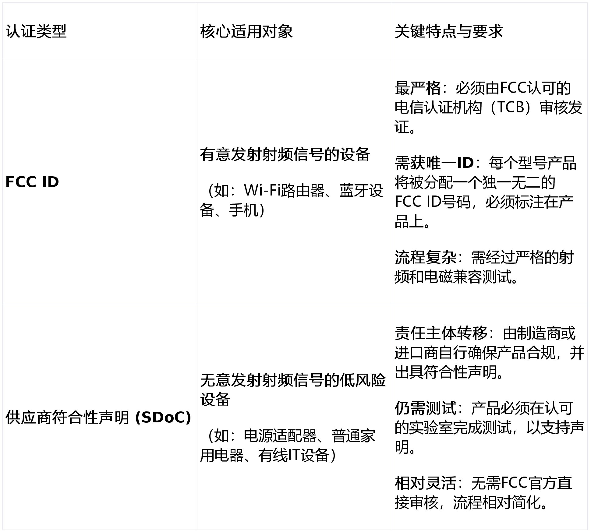 FCC根据设备的射频特性,将认证路径主要分为两类,其严格程度和要求差异显著: