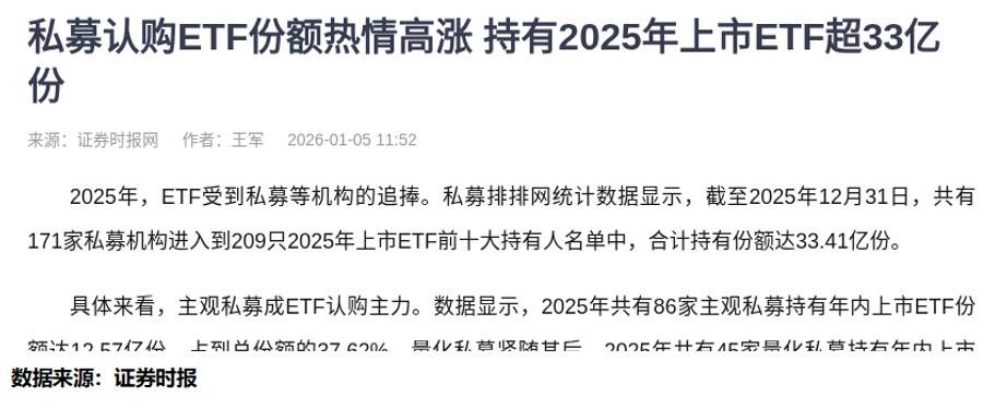 最近刷到个市场动向,2025年不少私募都在“扎堆”买ETF——排排网数据说,全年有171家私募进了209只当年上市ETF的前十大持有人名单,加起来拿了33.41亿份。其中最火的是科技类ETF,带“科技”“科创”字眼的占了总份额的34%,还有6只挤进了私募持有超5000万份的榜单里。