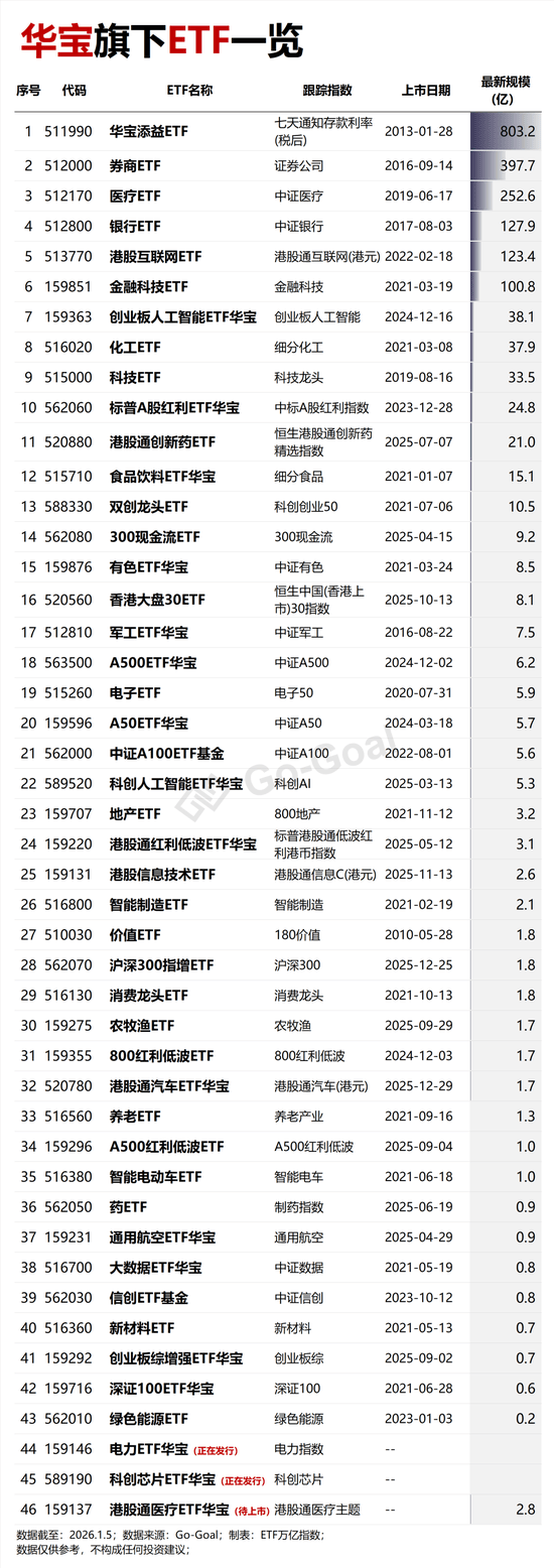 再来张大合集,华宝旗下全部ETF一览,供大家参考取用~
