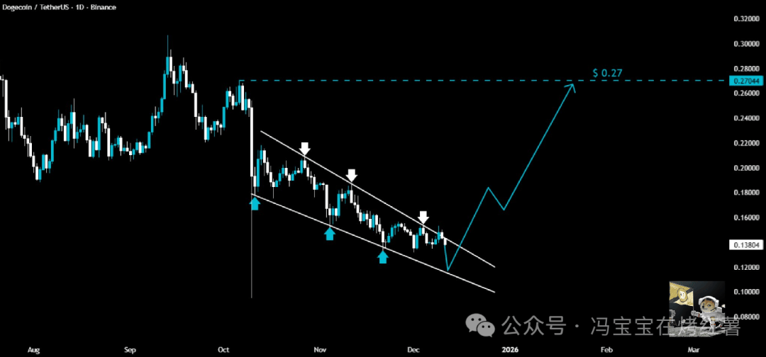 从各类技术指标与市场信号的矛盾,也反映出交易者对其未来走向的迷茫与纠结。短期走势预判来看,0.13的心理关口被市场视为最重要的支撑防线。具体而言,若能成功站稳0.13这一心理关口,短期内更大概率进入区间震荡整理,而非直接延续此前涨势。若能重新收复0.14失地,则有望再度向0.15整数关口发起冲击,甚至是0.27发起攻击。