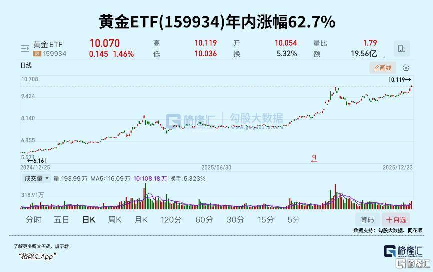 黄金ETF(159934)今日上涨,净值创历史新高;今年以来,该ETF涨幅达到62.7%,创历史新高。