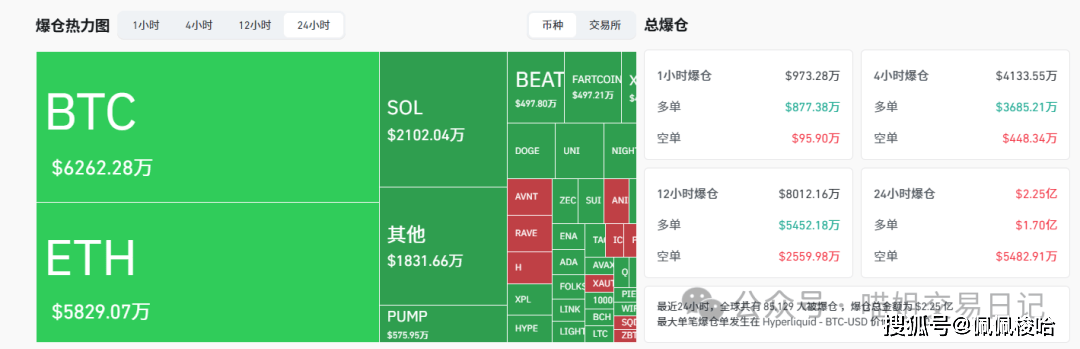 最近24小时,全球共有 85,129 人被爆仓 ,爆仓总金额为 $2.23 亿!今天平安夜,明天圣诞,全球主要股市都会陆续休市,缺乏主力参与,币圈也会很清淡。