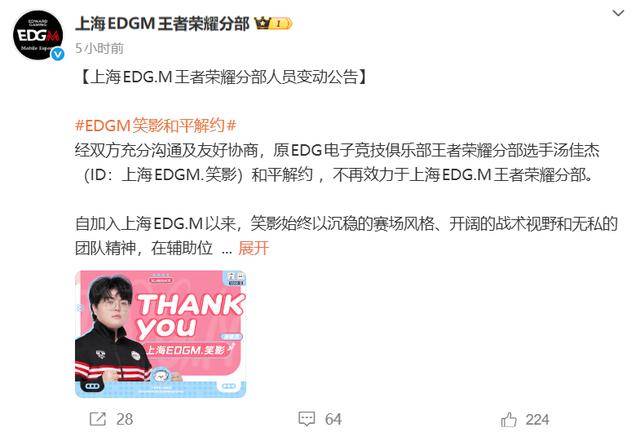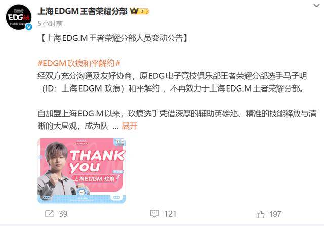 而EDGM原来的两个辅助笑影和玖痕都已经解约了,辅助位引进了TTG的涛,也是原来WB的辅助,新赛季可能会首发。