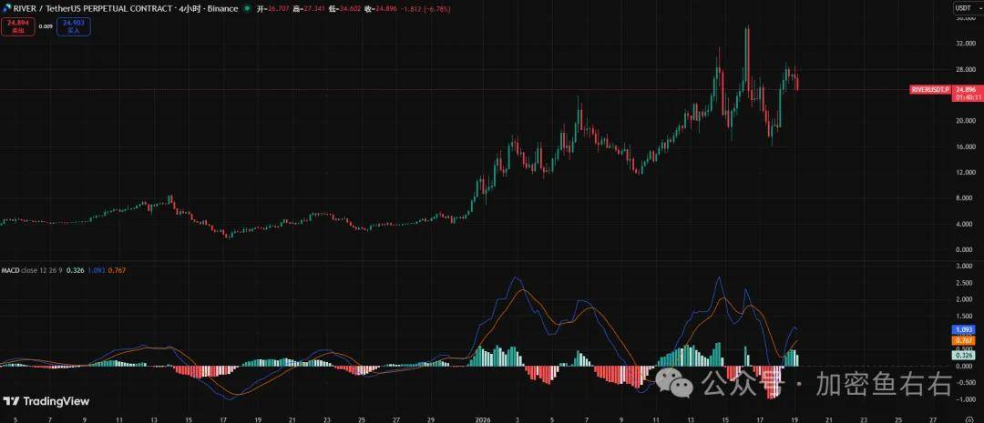 RIVER坚决不做多,优先观察,可逢高轻仓做空。在28-28.62区间遇阻时布局,止损设29上方,目标先看25.21,破位后延伸至22,避免被短期震荡迷惑。