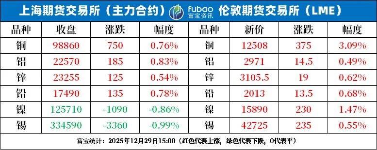 美降息预期推动美元低位徘徊,国内11月规模工业企业利润同比降幅较大,市场预计明年1季度或有利好政策推出。宏观预期利好大宗,但资金获利了结,午后基本金属普遍迎来较大幅度回调。截止下午三点收盘,沪铝领涨0.83%;沪铅涨0.78%;沪铜涨0.76%;沪锌涨0.54%;沪锡跌0.99%;沪镍跌0.86%。
