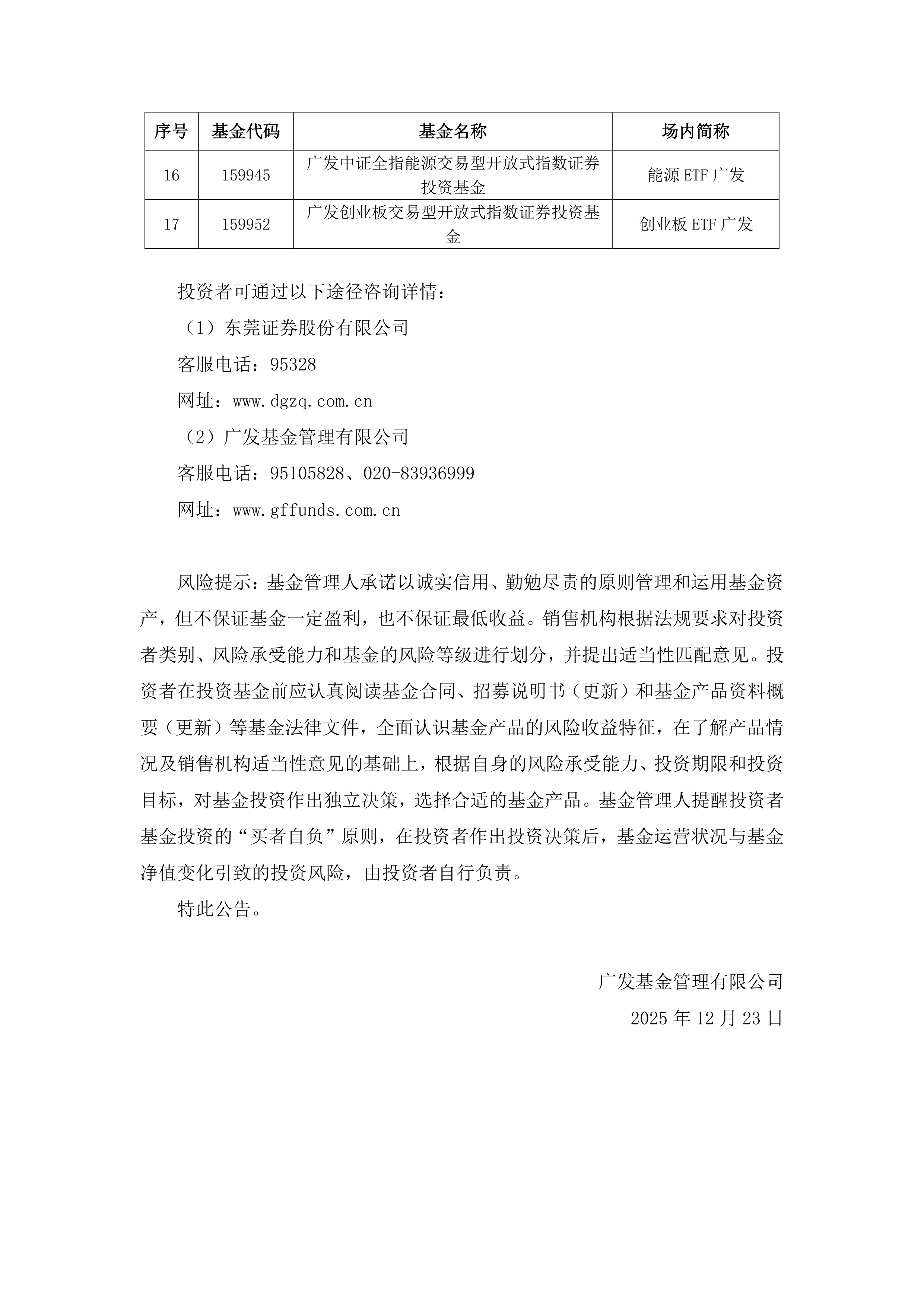 基金-2000ETF-广发基金管理有限公司关于增加东莞证券为旗下部分ETF一级交易商的公告