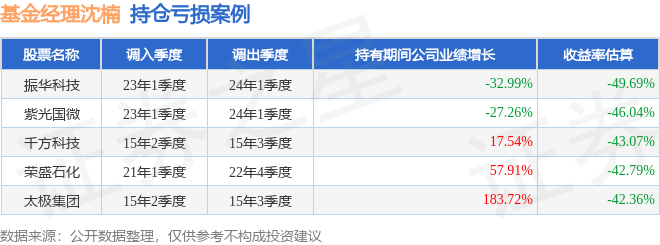 沈楠管理的交银国企改革灵活配置混合A基金在23年1季度买入振华科技,在持有1年又0个季度后在24年1季度卖出。持有期间的估算收益率为-49.69%,持有期间振华科技在2023年到2024年的年报营业总收入降幅为32.99%。