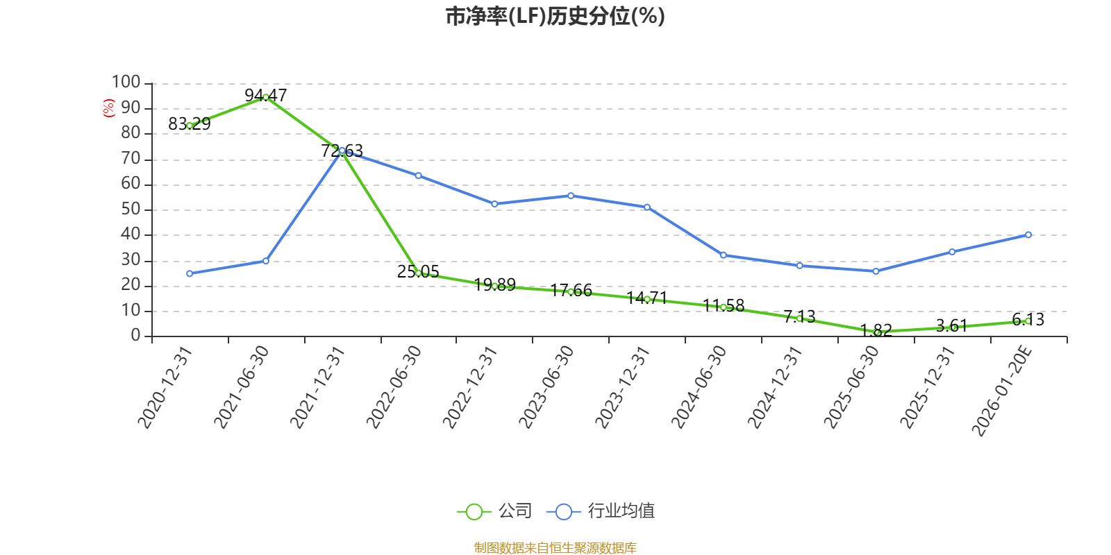 市盈率、市净率为负时,不显示当期分位数,会导致折线图中断。