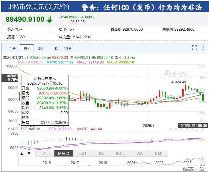 加密货币方面,主要币种全部下跌,比特币价格跌超3%,跌破90000美元,加密货币全网近24小时爆仓人数超16万人,爆仓总金额达7.13亿美元(约合人民币50亿元)。