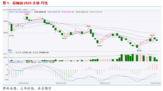 上月油脂板块整体破位下行,在12月下旬迎来一小波反弹。从当前的基本面来看,目前棕榈油方面的产需数据整体仍偏空,但边际层面有所回暖,产地马来西亚11月底创纪录的高位库存基础上,高频产量数据在12月也并未给出明显的下降,使得市场对12月底马棕库存的回落仍显悲观,不过12月下旬的高频出口数据有一定分析,有机构给出较大增幅,叠加MPOA给出的12月前20日产量数据小幅下滑,一度给市场带来反弹支撑,但最新公布的船运机构全月出口数据仍录得降幅,再次打击市场信心。菜系方面,全球加菜籽丰产的预期打压国内菜系盘面,菜籽油的核心关注点中加关系目前还为出现明确的方向指引,加拿大外交部长称正在“推进与中国的友好关系”,虽然中加关系仍然处于低谷,加拿大官员主动访华,显然是希望通过对话推动两国关系的改善。另一方面,澳菜籽已经通关,虽还未入榨,但国内供需紧张格局的担忧情绪有所缓解,还需继续追踪实际到港和入榨情况。豆油这一端EPA上周确认2026-2027年度的生物燃料掺混最终方案推迟至明年一季度公布,美豆油短中期仍难给予需求端明确的支撑。但国内的豆油年末库存周度环比小幅下降,盘面压力减弱,跟随棕榈油为主。目前阶段性来看,整体基本面依然缺乏强有力的利多提振,反弹持续的驱动与支撑仍显不足,低位多单入场者短期或难有更近一步的收益表现。不过在利空前期持续大幅兑现的背景下,弱现实的交易力度也在逐渐转弱,做空的收益风险比也在降低,现阶段的单边趋势性交易难度较大,建议投资者短差操作为主,等待USDA月报以及棕榈油产地产需数据的变化情况。