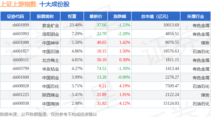 上证上游(000094)指数十大成份股详情如下: