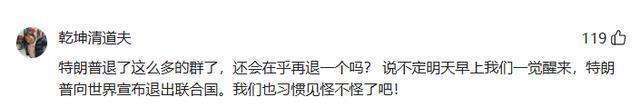 有评论认为,特朗普作为前总统,早已习惯于在国际事务中做出大胆决策,退群对他来说早已不是什么新鲜事。有网友甚至戏谑道,也许某一天我们就会看到特朗普宣布美国退出联合国。