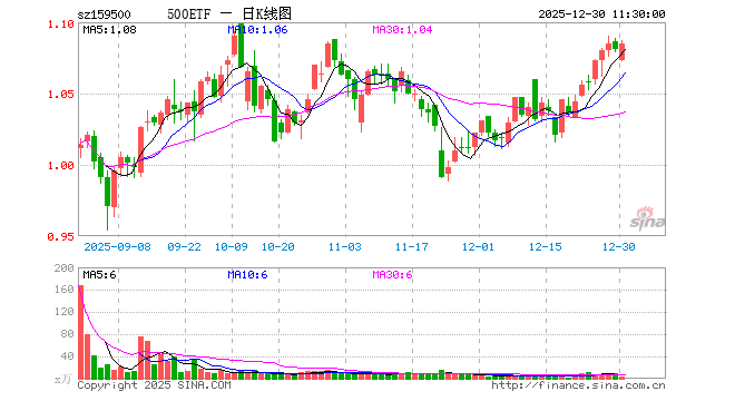 12月30日,截止午间收盘,500ETF(159500)涨0.37%,报1.085元,成交额388.54万元。500ETF(159500)重仓股方面,胜宏科技截止午盘跌2.08%,华工科技涨0.17%,润和软件跌2.11%,指南针跌0.61%,芯原股份涨3.55%,四川长虹跌0.77%,巨人网络跌1.29%,东吴证券跌0.44%,菲利华跌1.25%,天风证券跌0.71%。