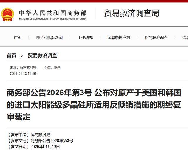 面对美国的压力,中国表现出战略定力。中国商务部宣布对原产于美国和韩国的进口太阳能级多晶硅继续征收反倾销税,实施期限5年,展示了中国的反制能力。